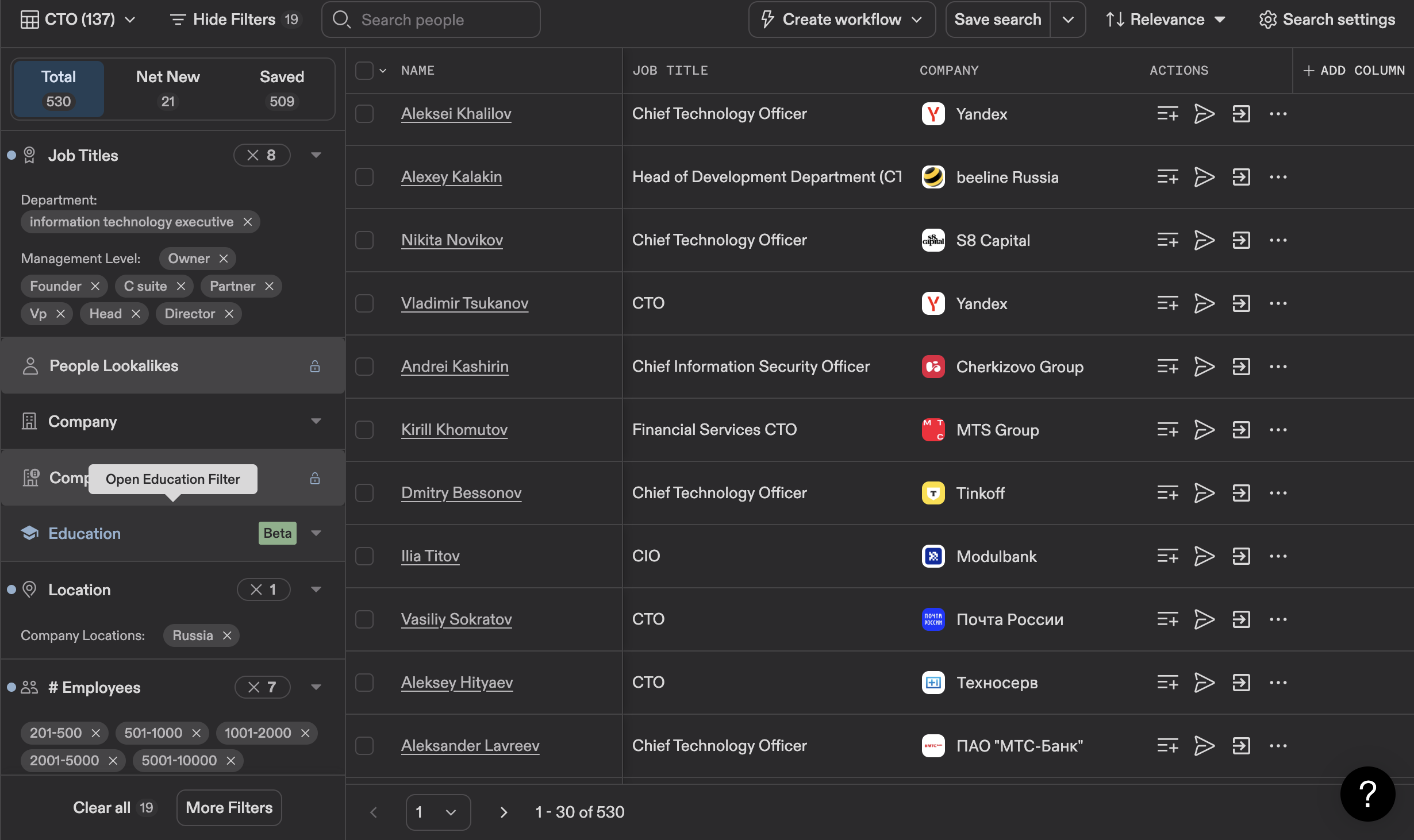 Для рассылки искали контакты в сервисе Apollo с помощью простеньких фильтров: должность, количество людей в компании, регион и валидность почты. Так мы довольно легко собрали необходимую базу. Если еще немного покрутить фильтры, то можно собрать еще +300 лидов, в итоге у нас было где-то 800 контактов.